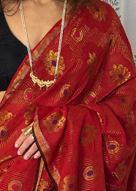 Red Pure Cotton Jamdani Saree with Intricate Zari Work