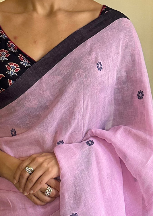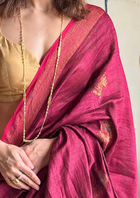 Magenta Pure Linen Cotton Jamdani Sari with Zari Work
