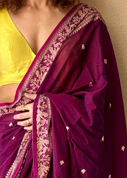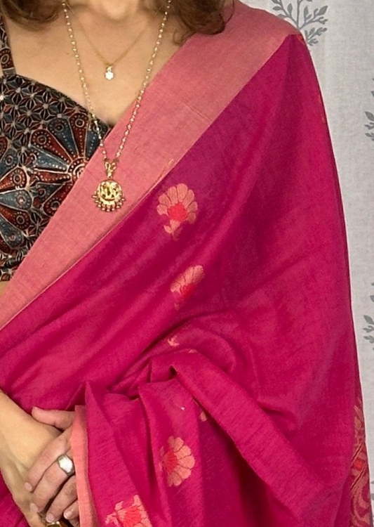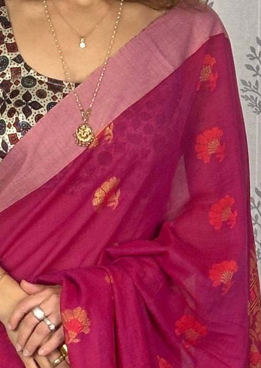 Magenta Pure Cotton Baluchari Saree with Weaving