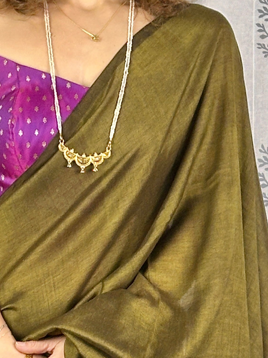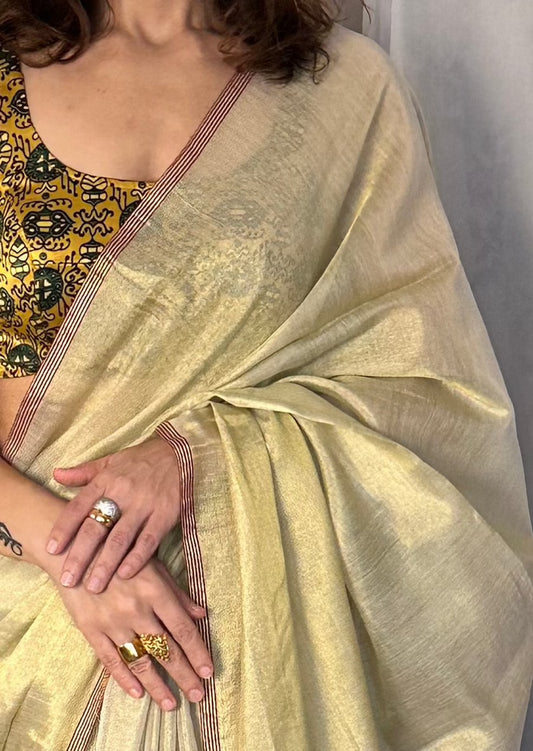 Light Gold Pure Mul Mul Handwoven Tissue Cotton Sari