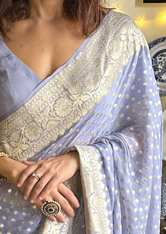 Lavender Banarasi Pure Khaadi Georgette Saree with Dual Tone Water Zari