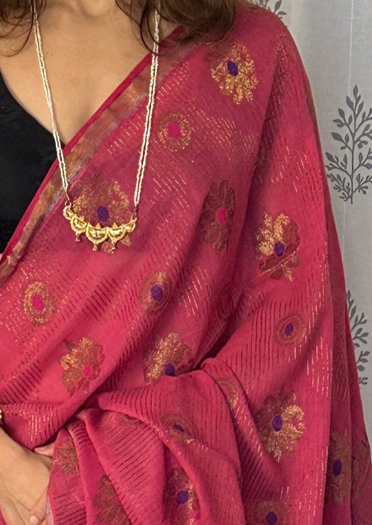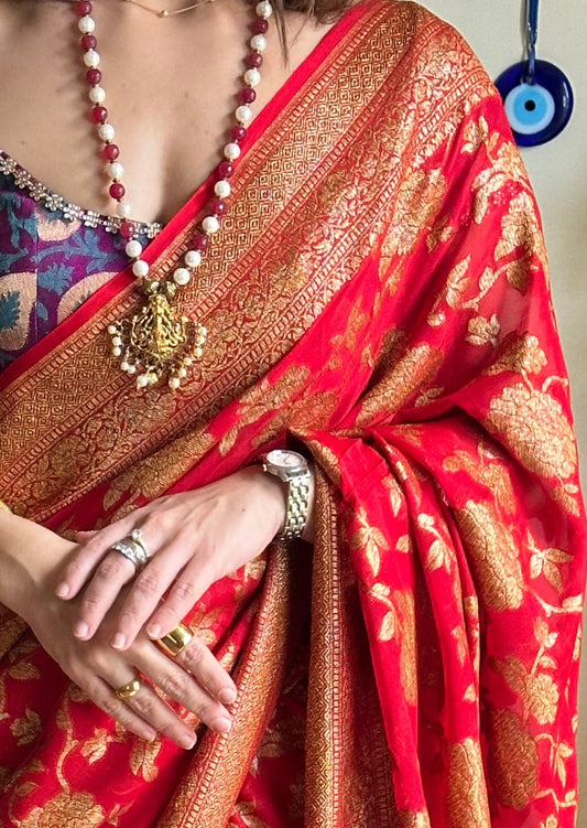 Red & Gold Banarasi Pure Khaadi Georgette Sari