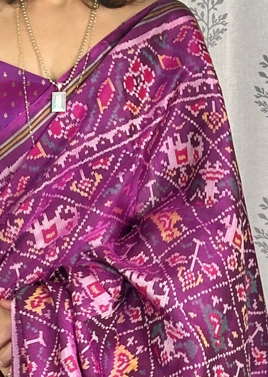 Purple Handwoven Pure Mulberry Silk Patola Saree