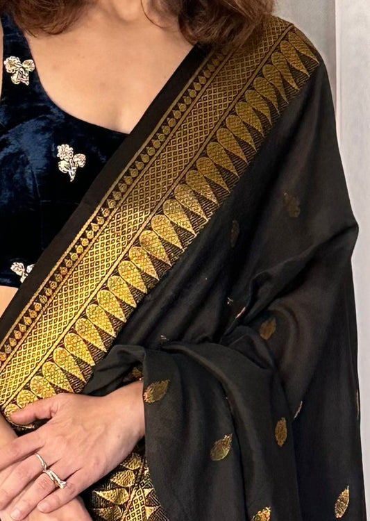 Black Pure Katan Silk and Cotton Banarasi Sari with Zari Work