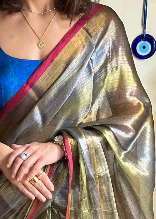 Antique Gold Pure Mul Mul Handwoven Tissue Cotton Saree