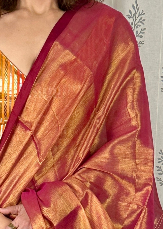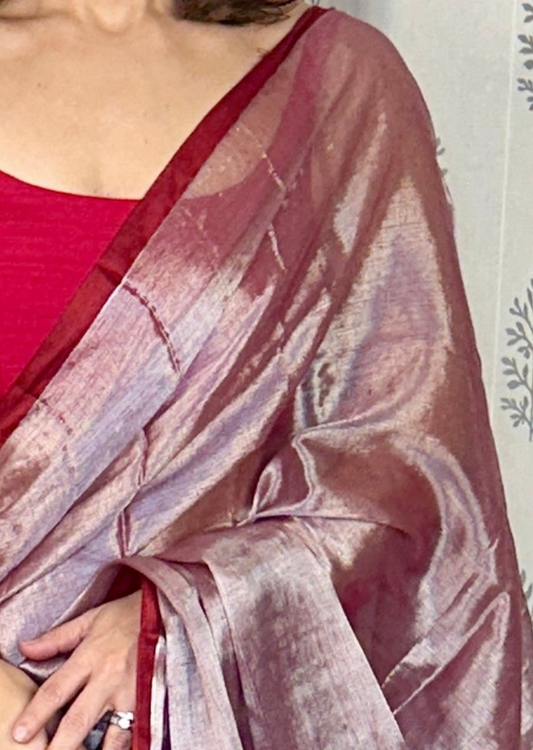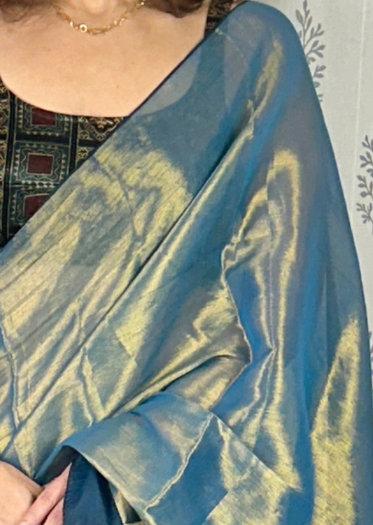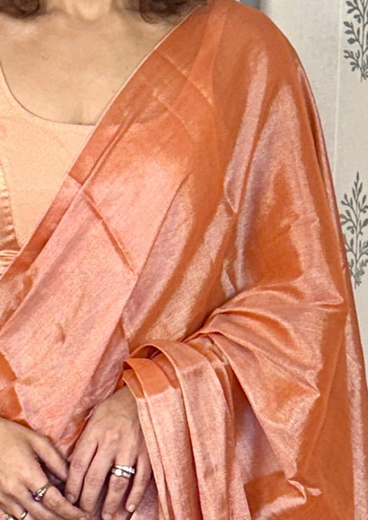 Dual Coloured Silver & Copper Pure Mul Mul Handwoven Tissue Cotton Saree