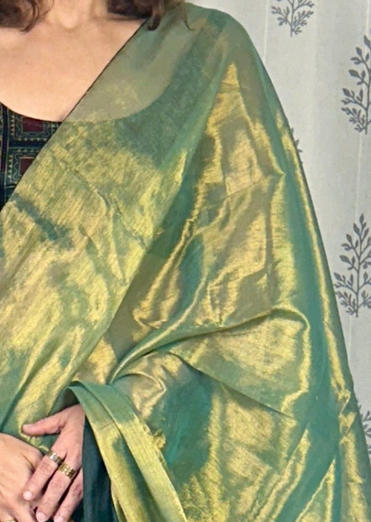 Dual Coloured Green Pure Mul Mul Handwoven Tissue Cotton Saree