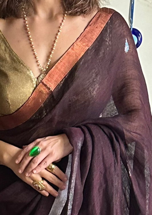 Introducing Miren, our handloom linen sari collection – a class apart in elegance and comfort. Crafted with exquisite handwoven linen, each sari exudes timeless grace. The breathable nature of linen ensures not just style, but comfort that lasts all day. Elevate your wardrobe with Miren, where class meets the unrivaled charm of artisanal craftsmanship.