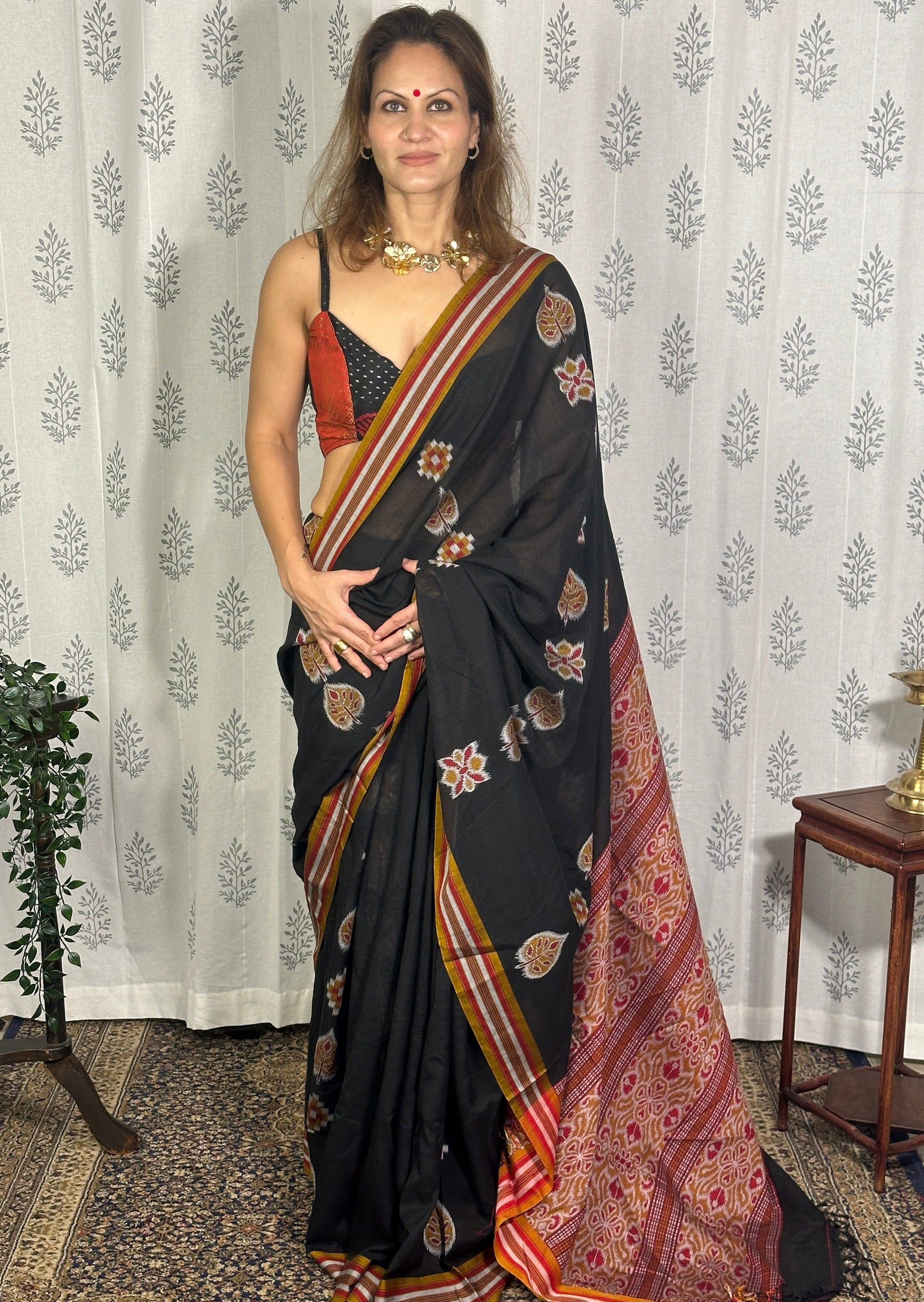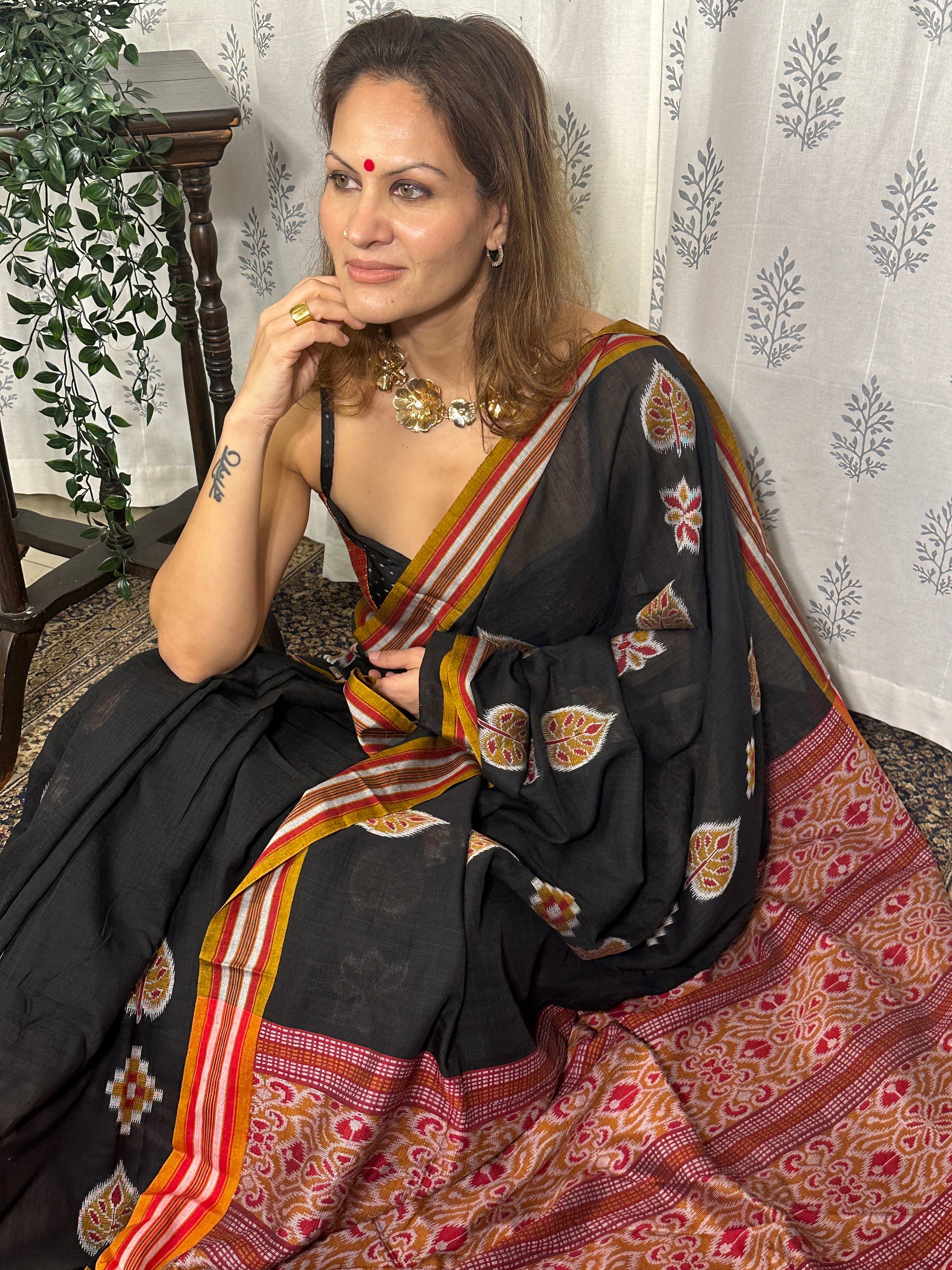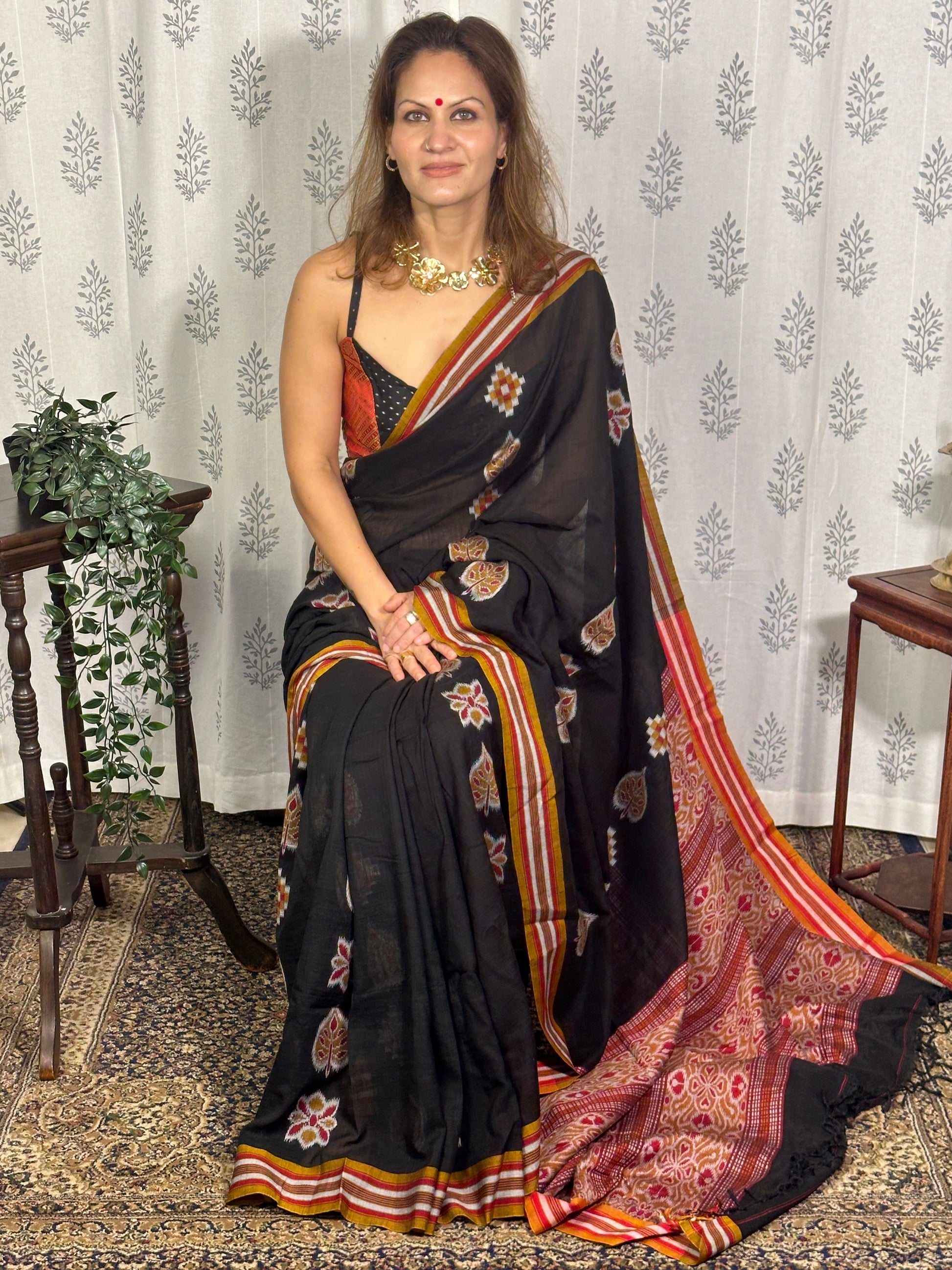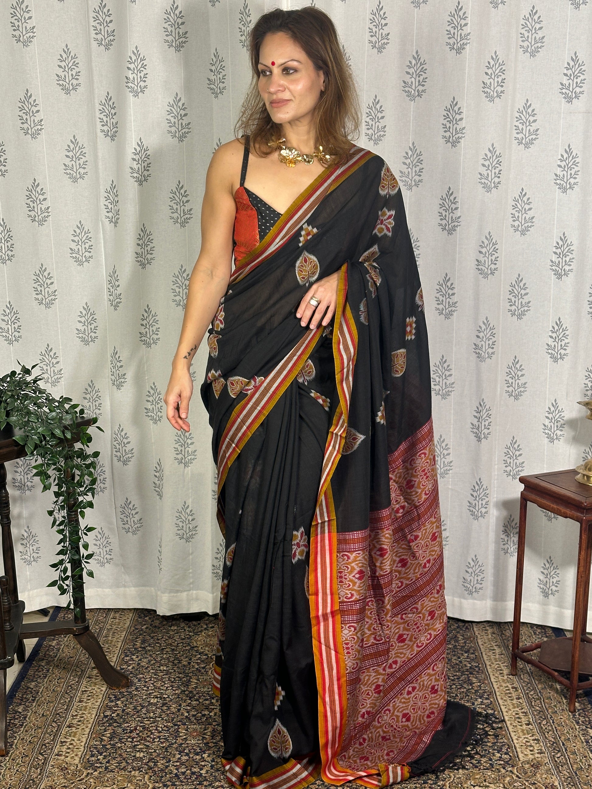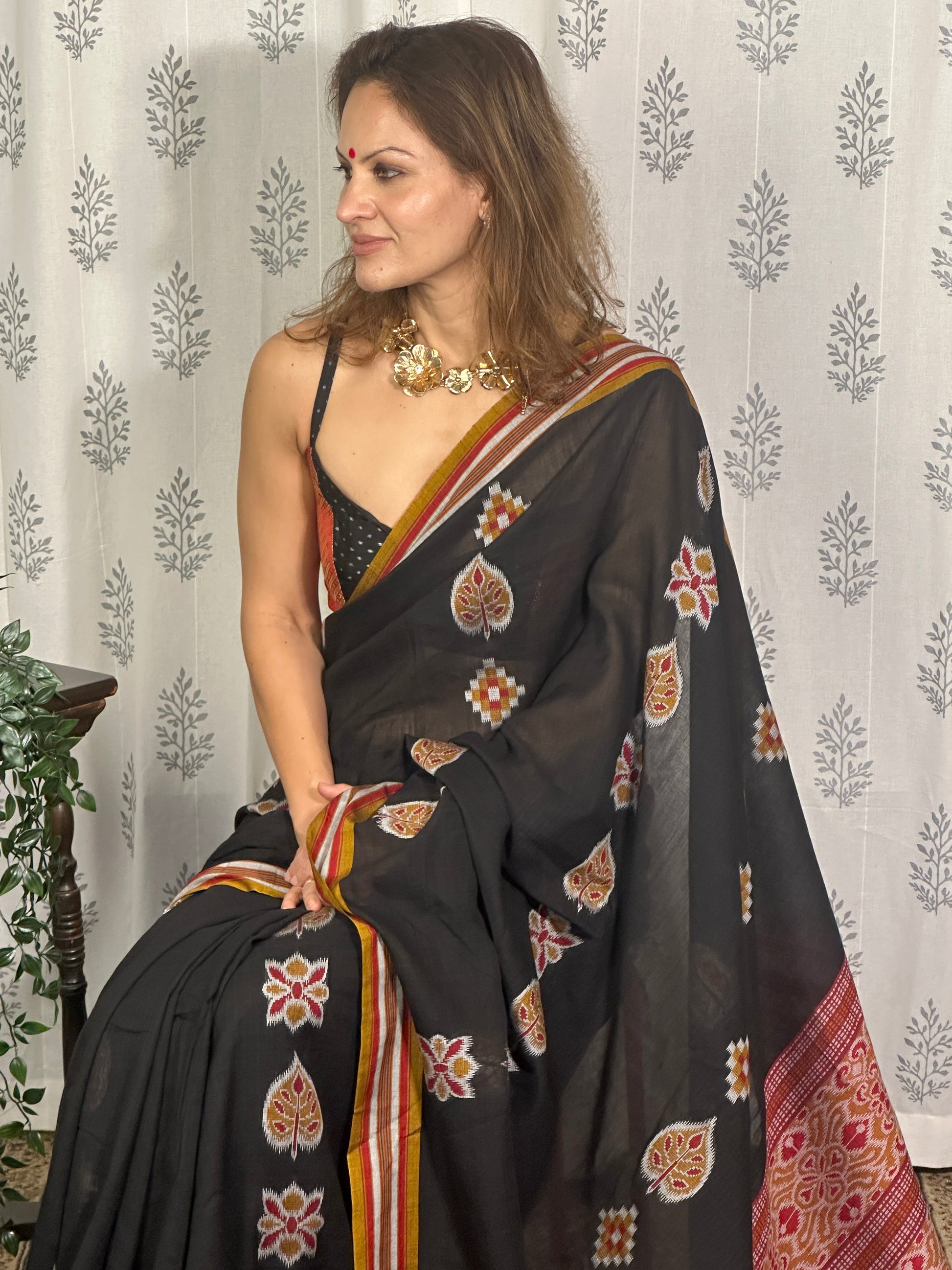 Black Mercerised Soft Cotton Sambhalpuri Weaving Jamdani Saree