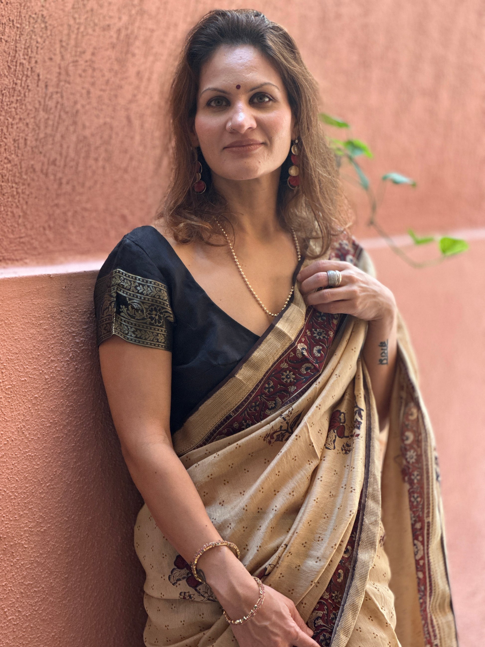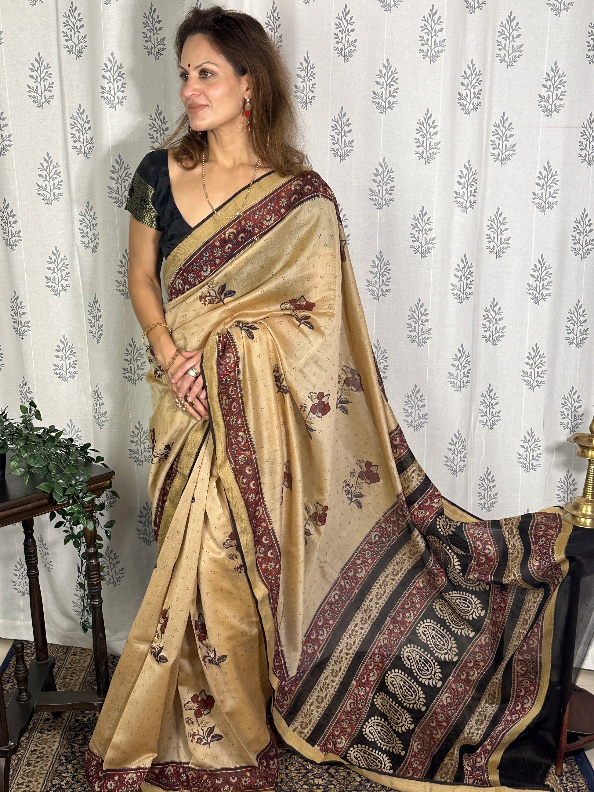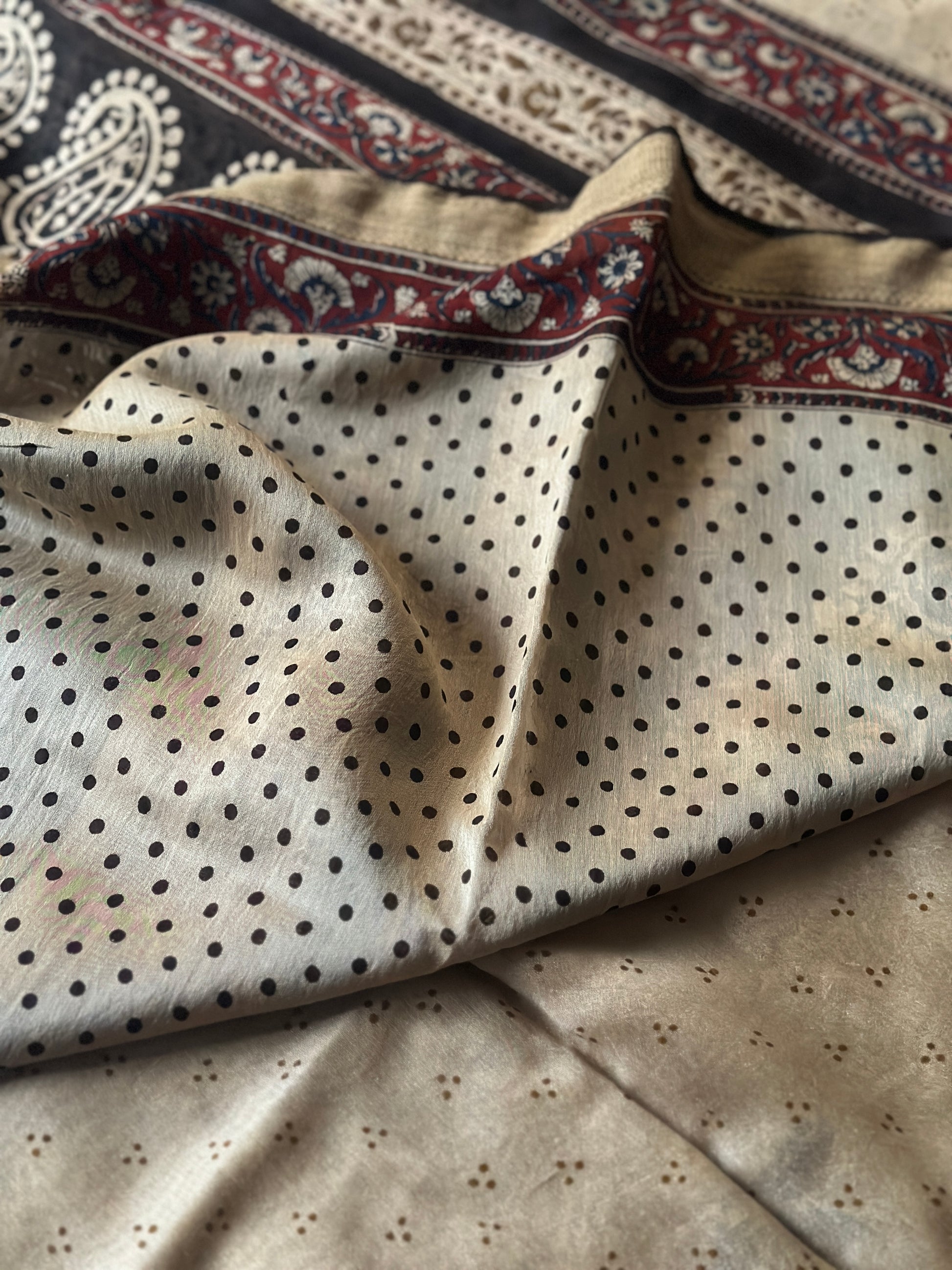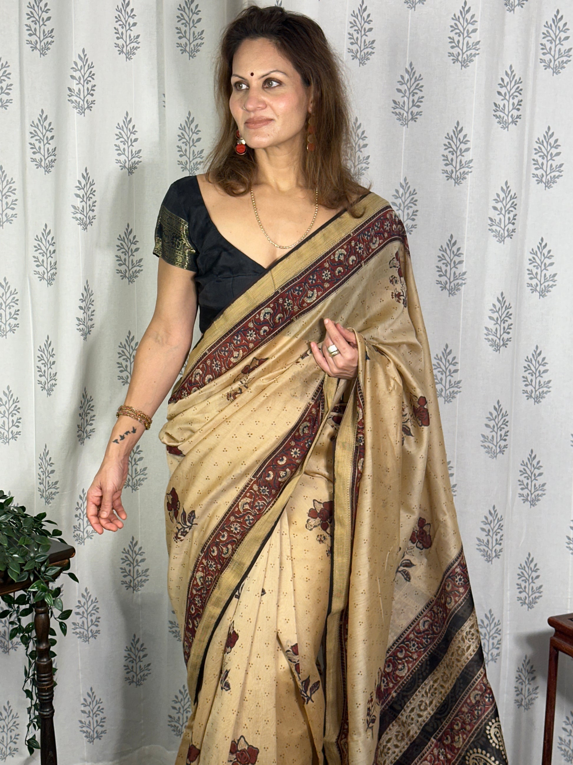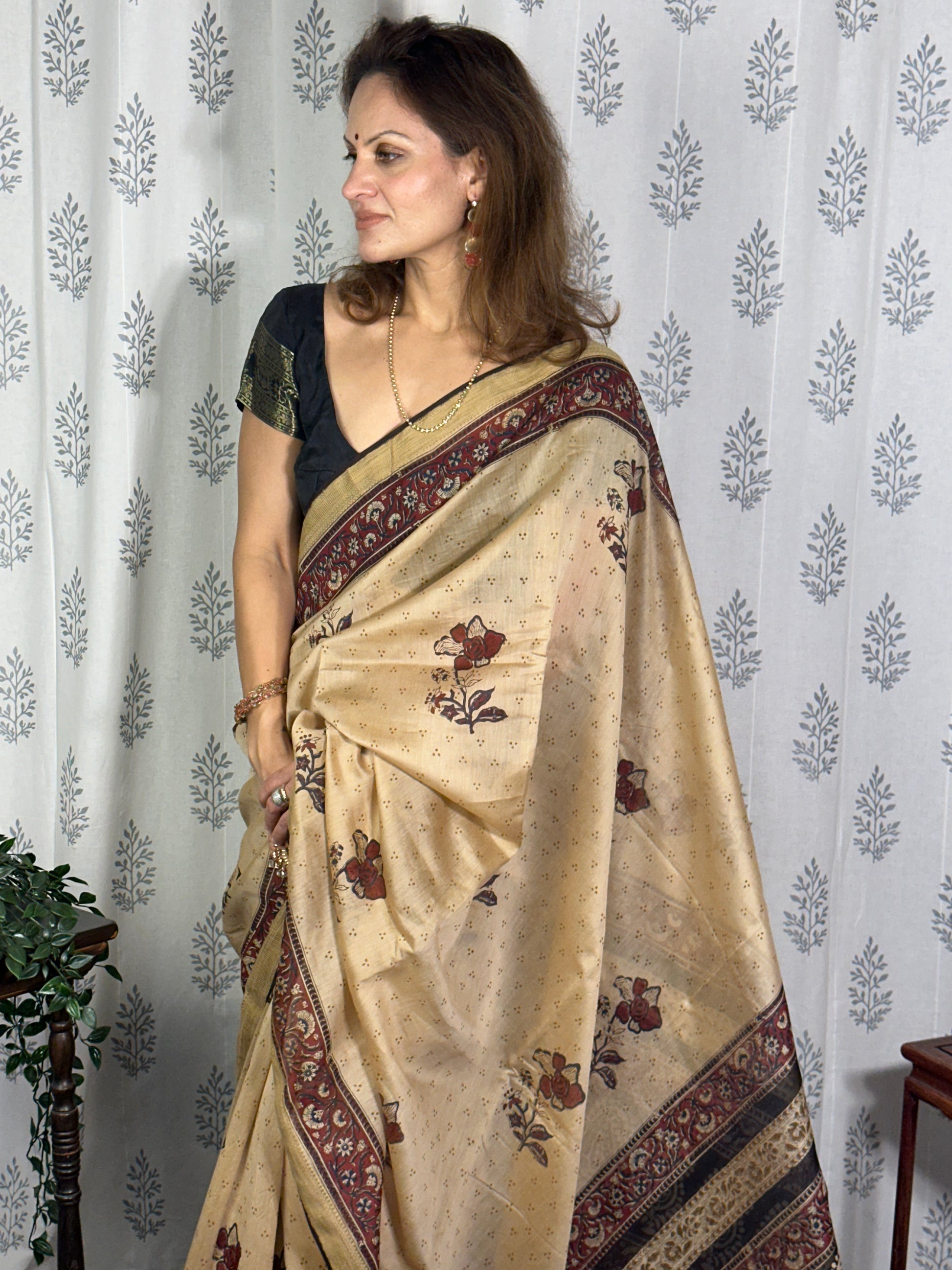 Cream Sanganeri Handblock Print Chanderi Silk Saree