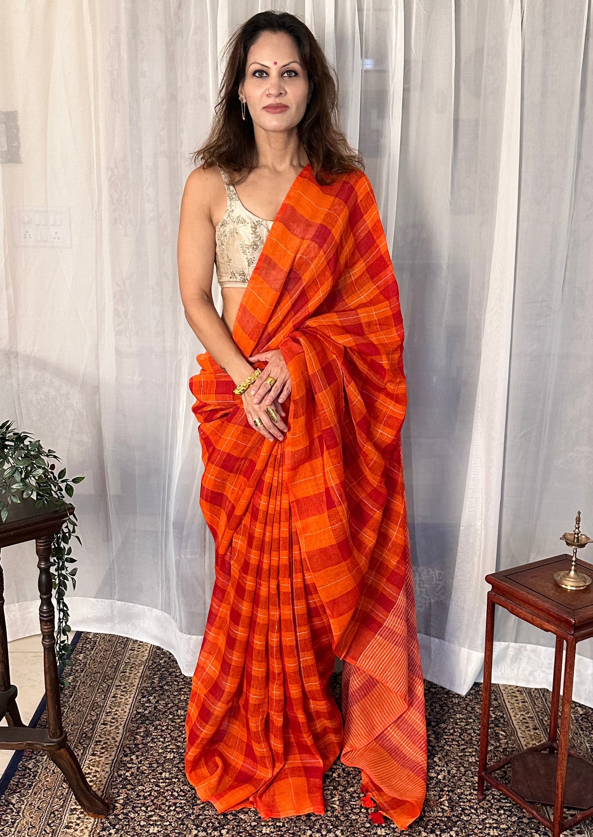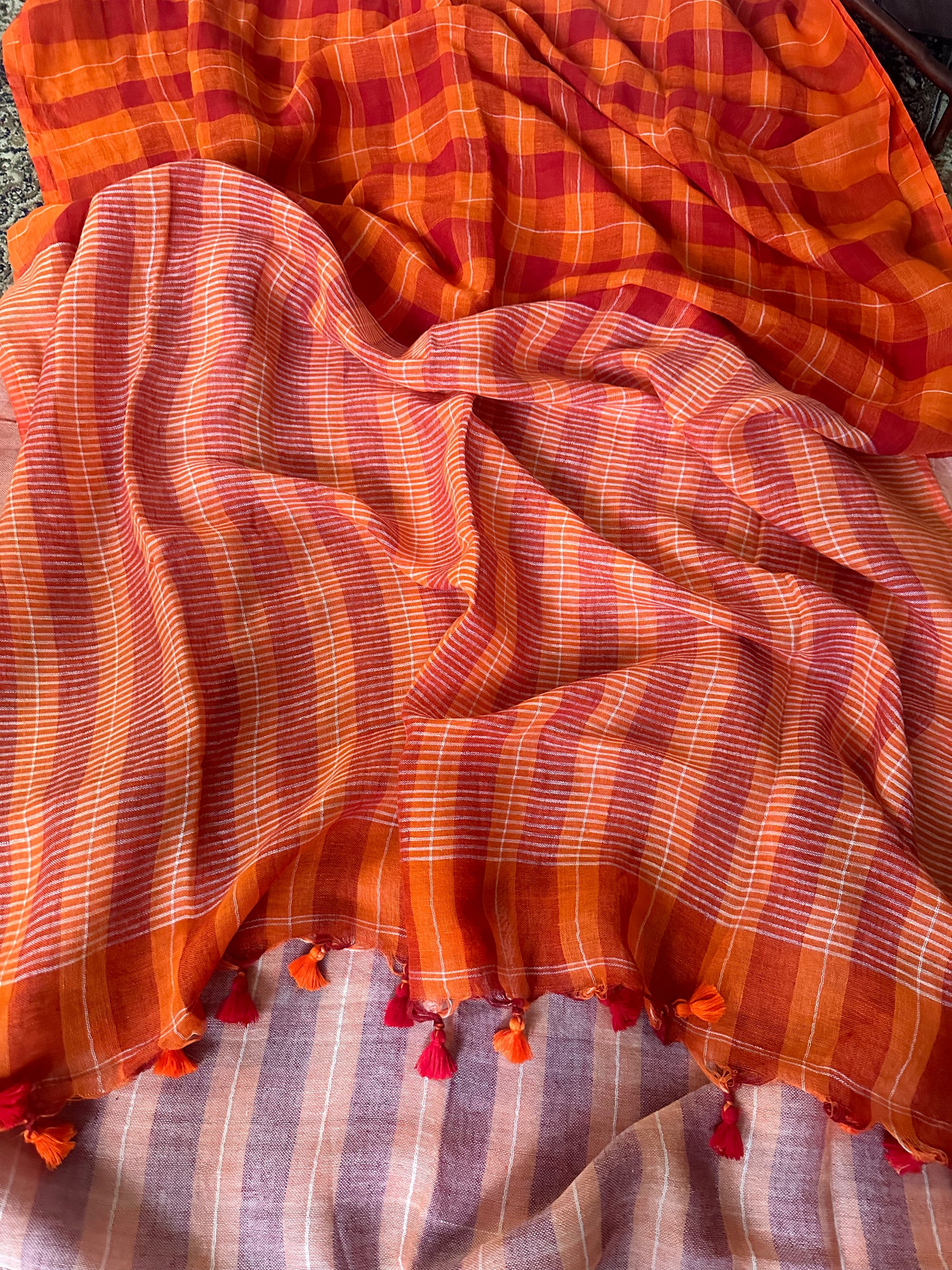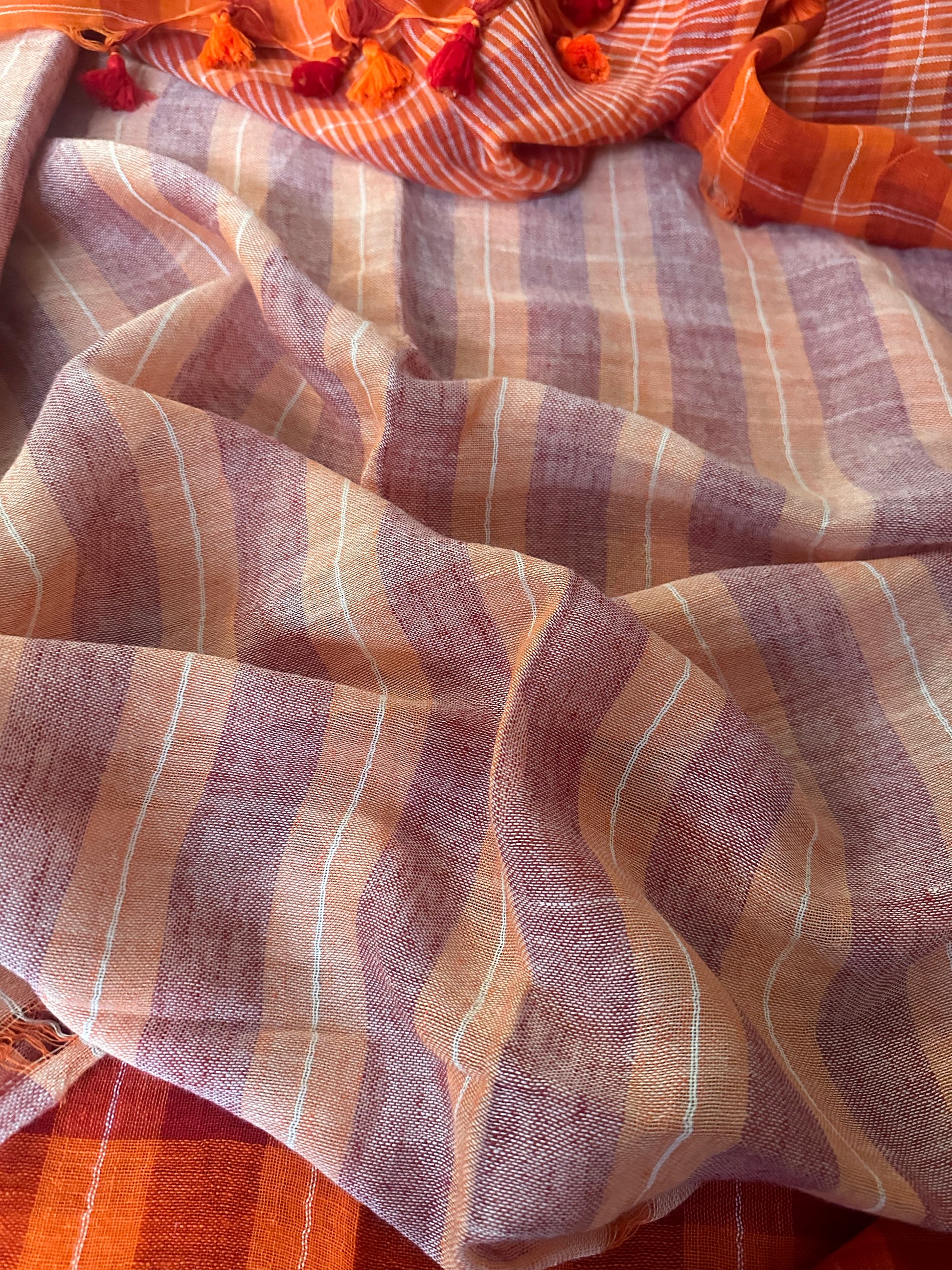 Experience luxury and elegance with our pure linen featuring checks. Handloomed with the finest materials, this piece exudes sophistication and exclusivity. Elevate your style with this timeless and versatile design.