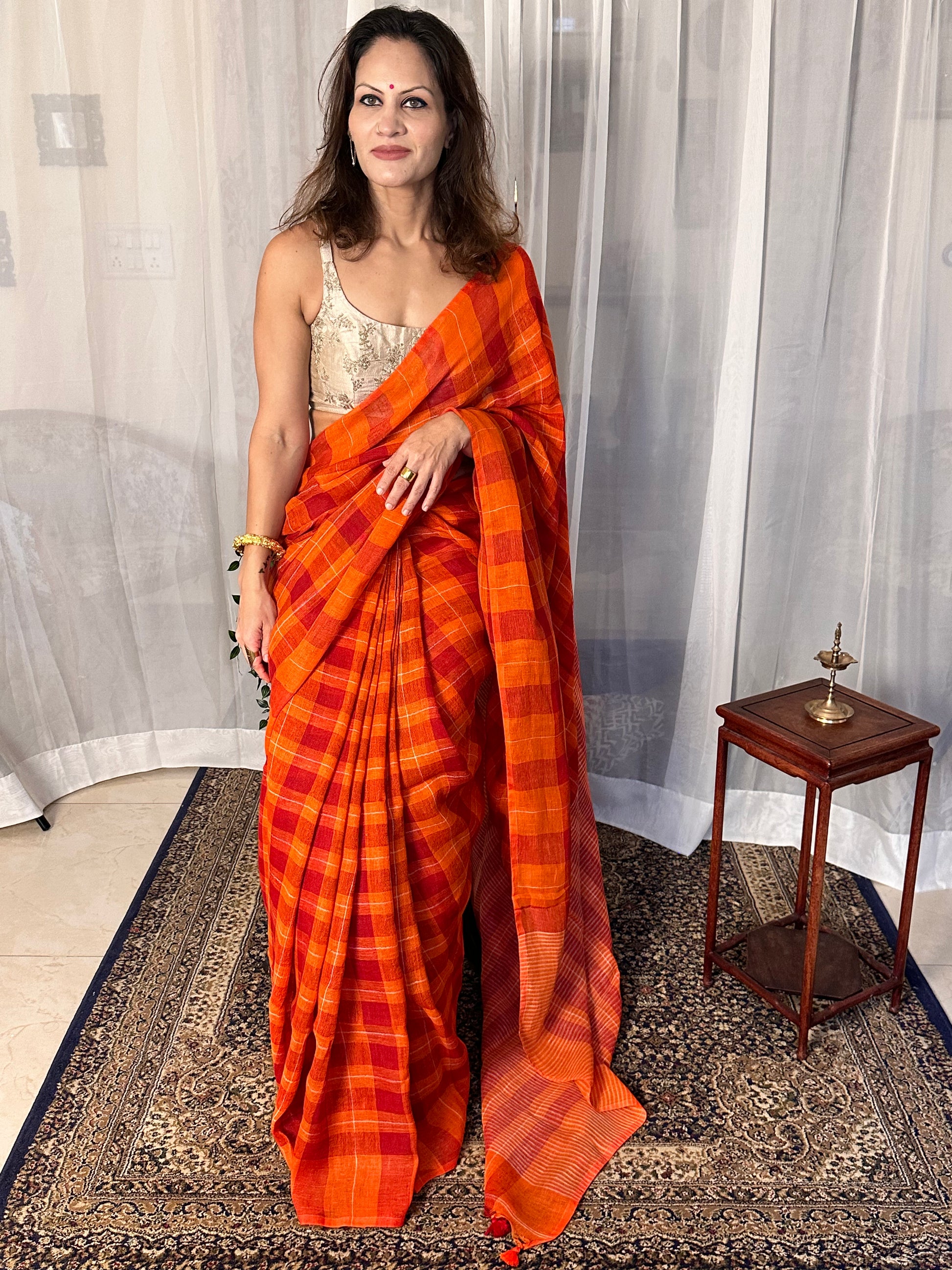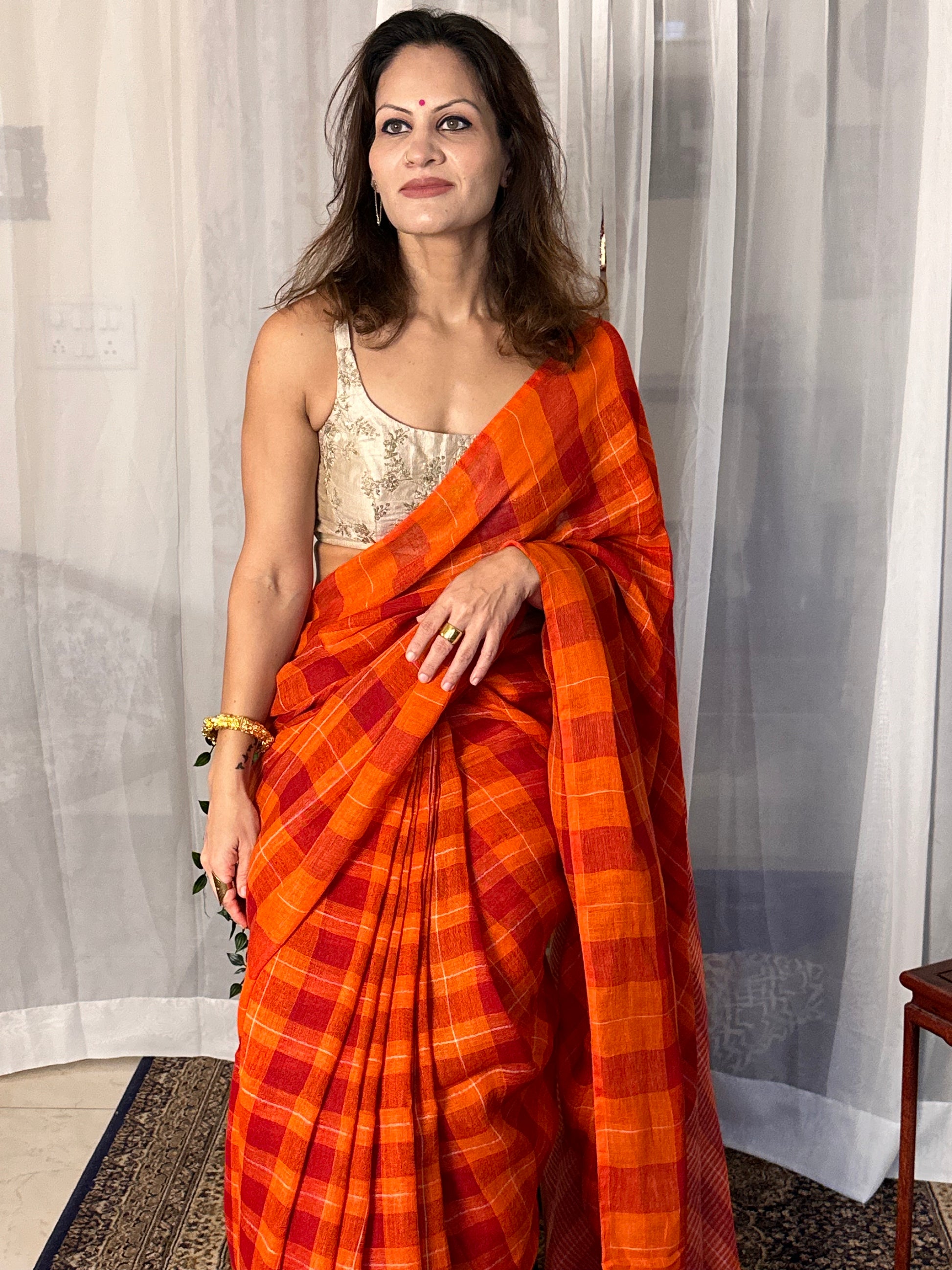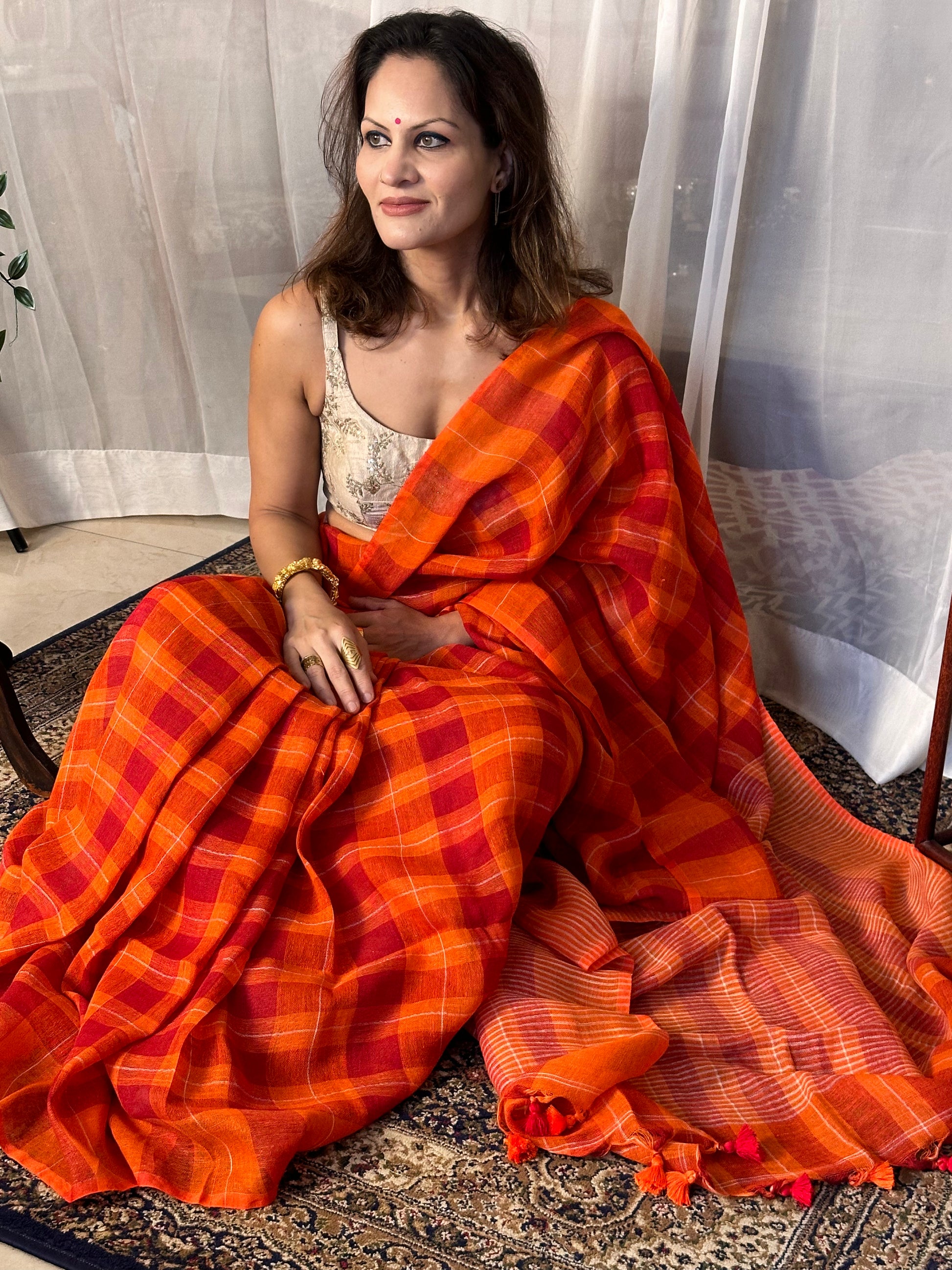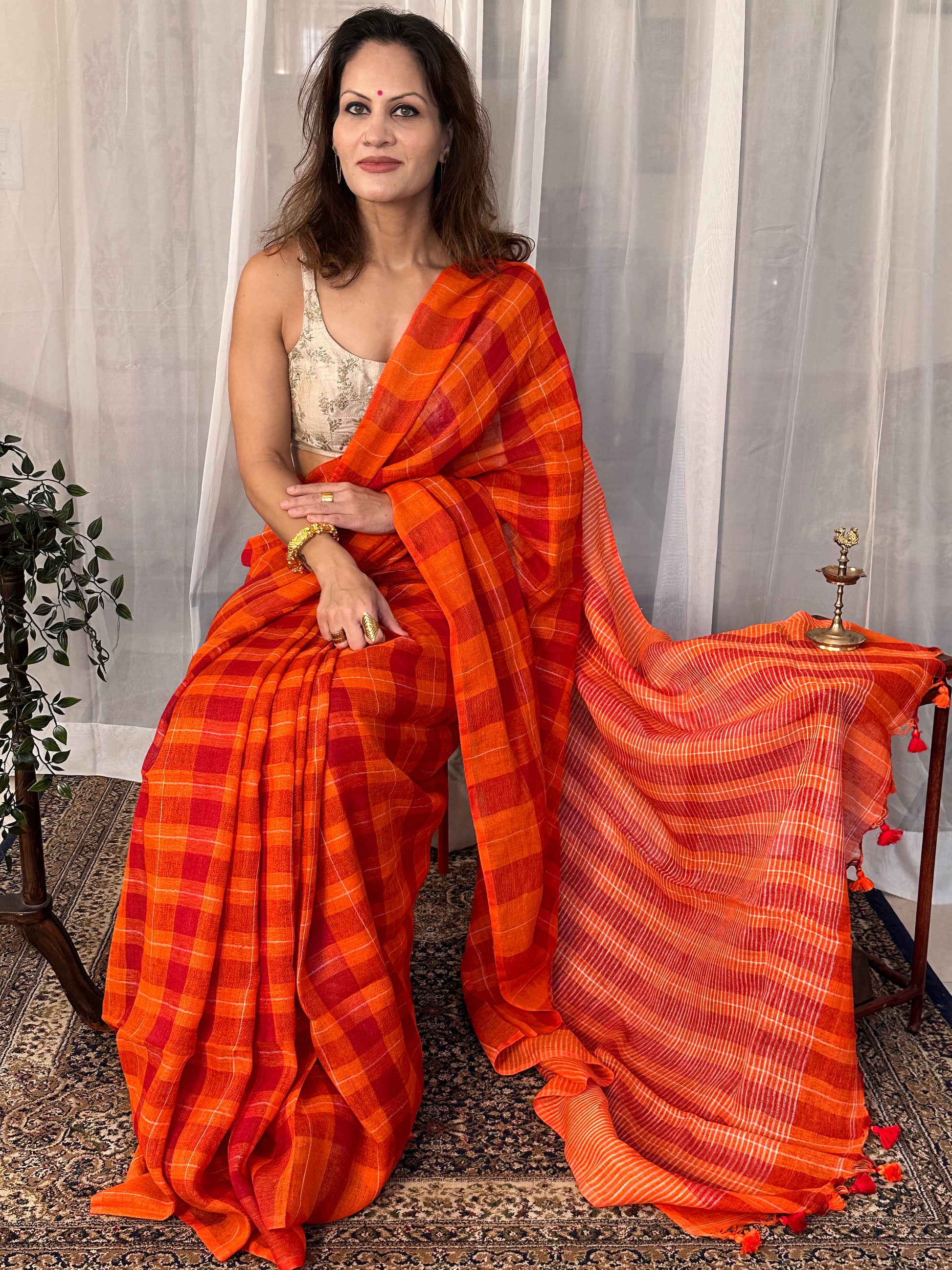 Experience luxury and elegance with our pure linen featuring checks. Handloomed with the finest materials, this piece exudes sophistication and exclusivity. Elevate your style with this timeless and versatile design.