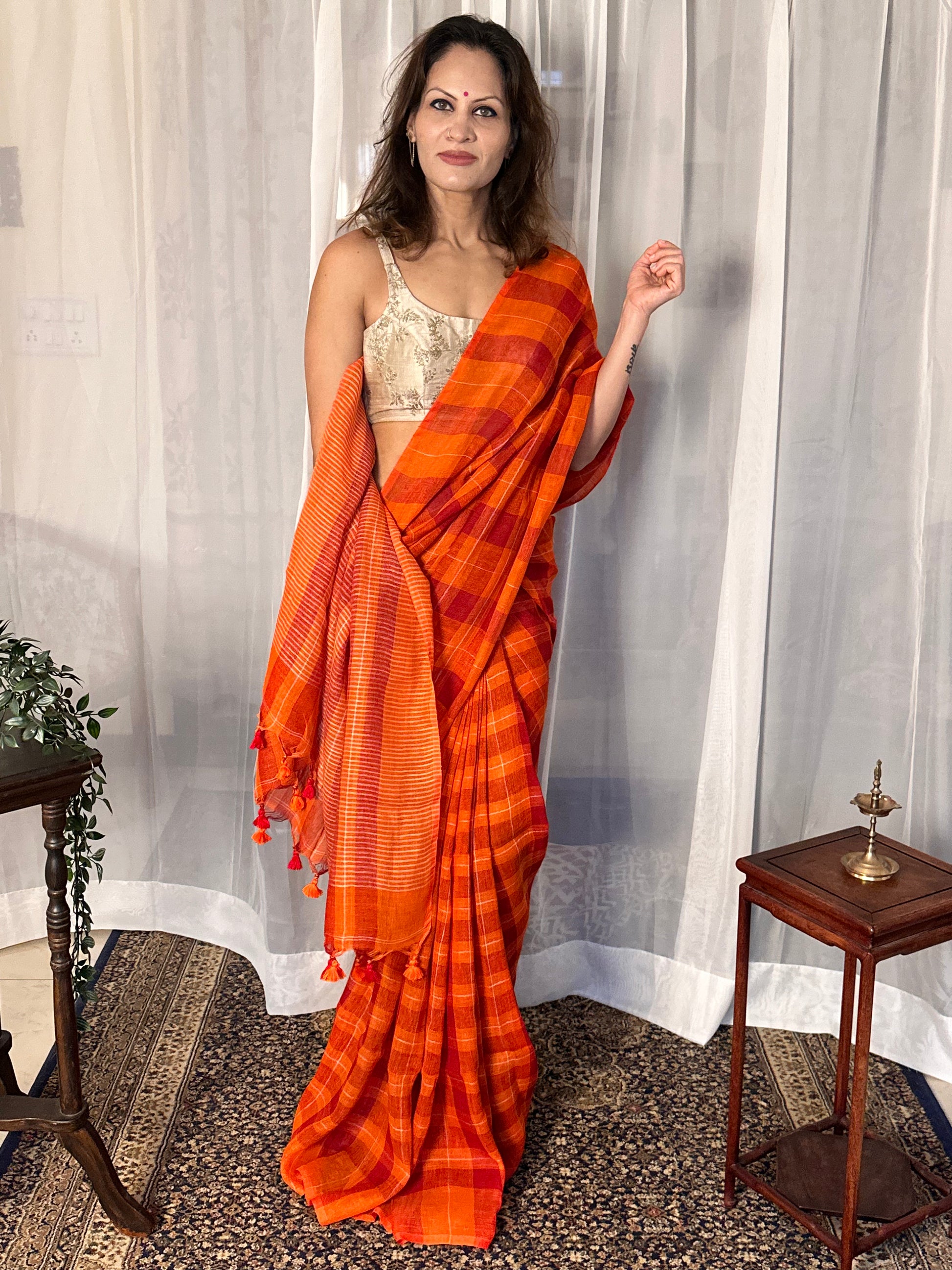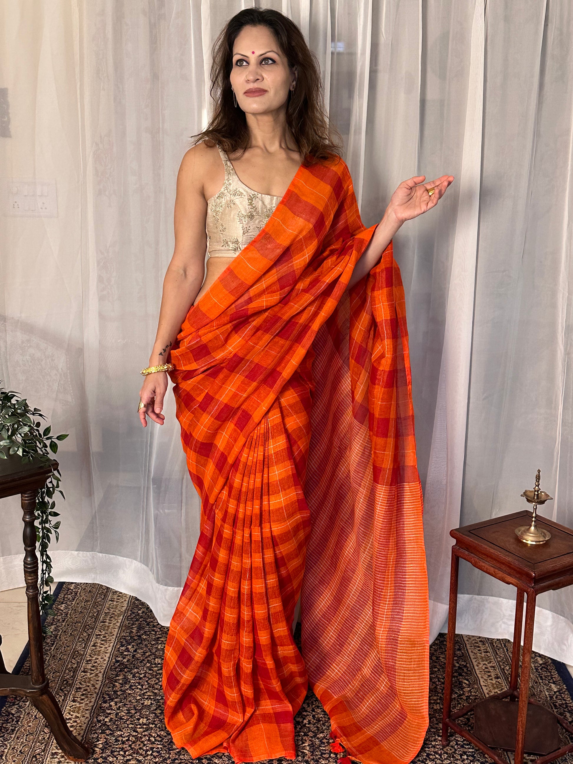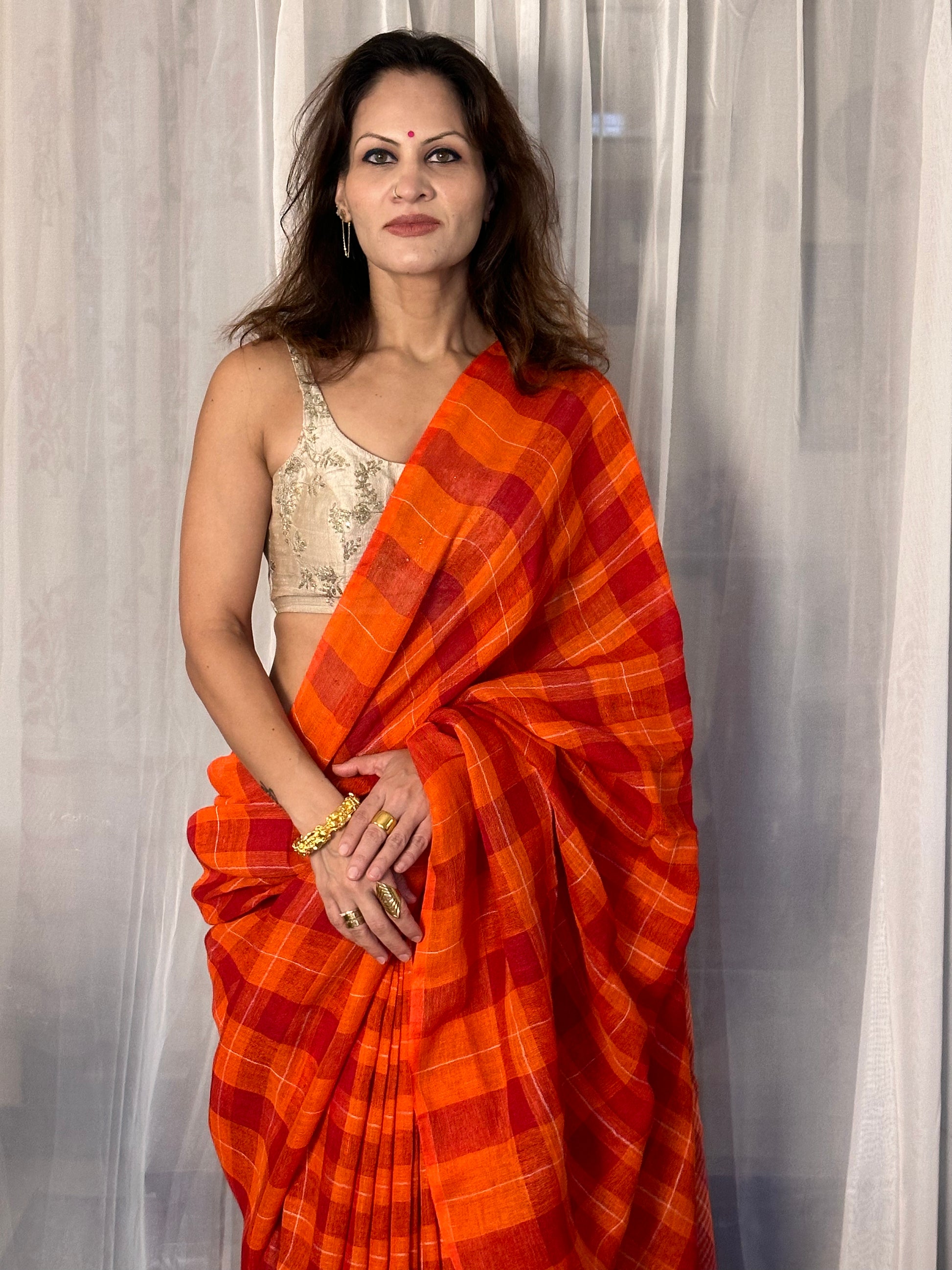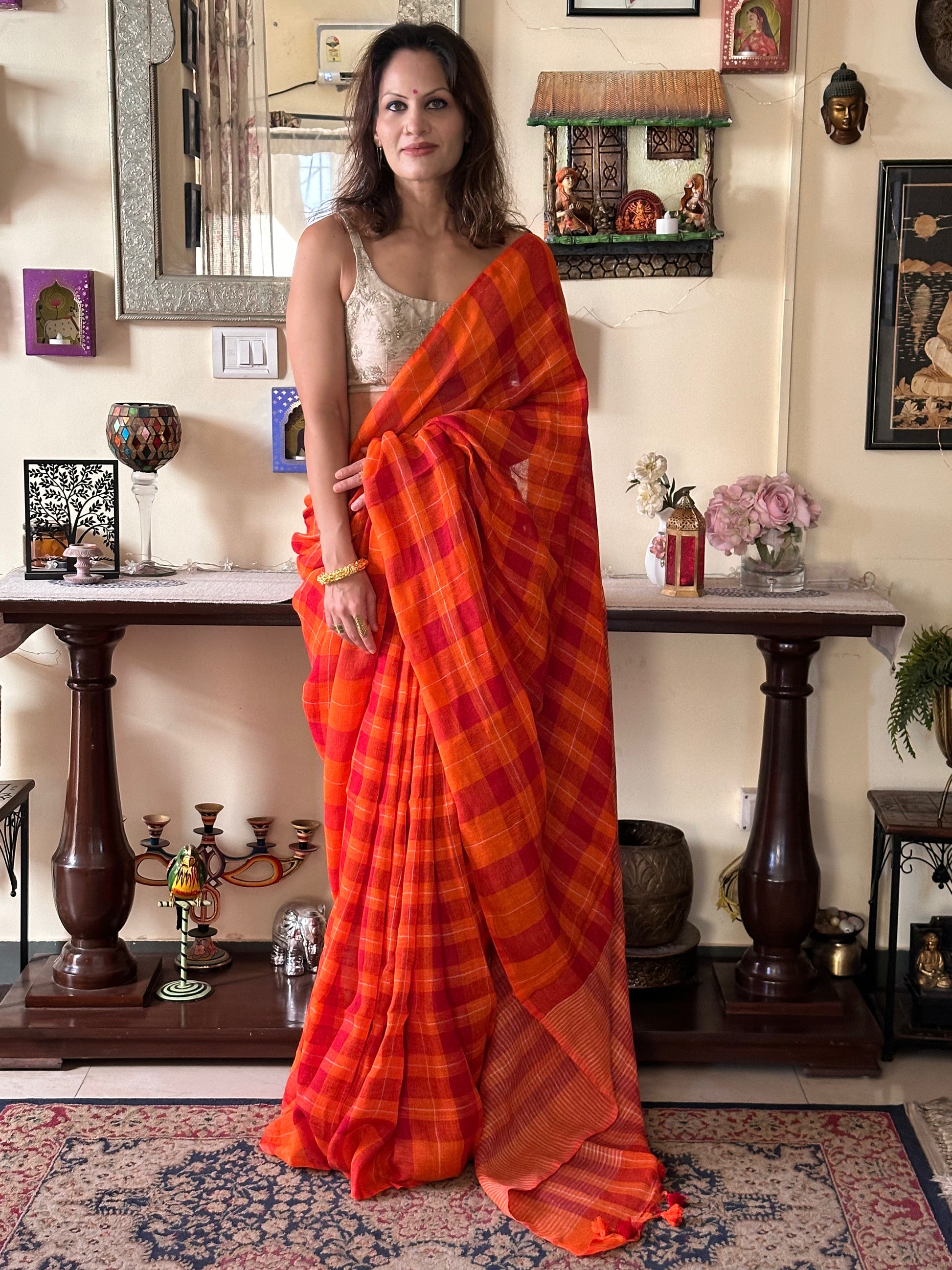 - Each piece is one of its kind and made uniquely for you. The saris are handwoven and thus you might notice minor irregularities and unevenness in the weave, pattern, or selvedge and those are not considered as damages but add to the charm and uniqueness of a handwoven sari.