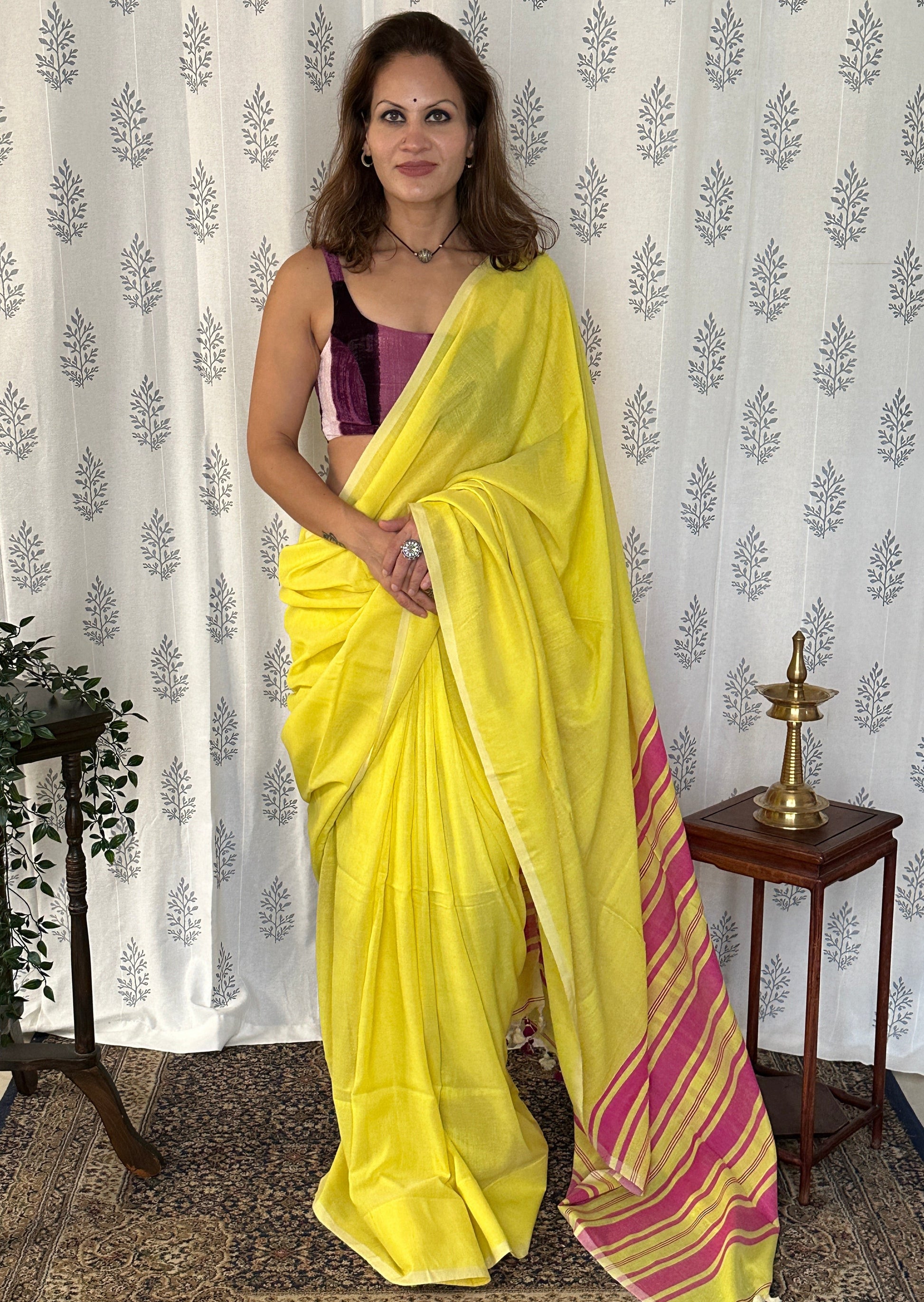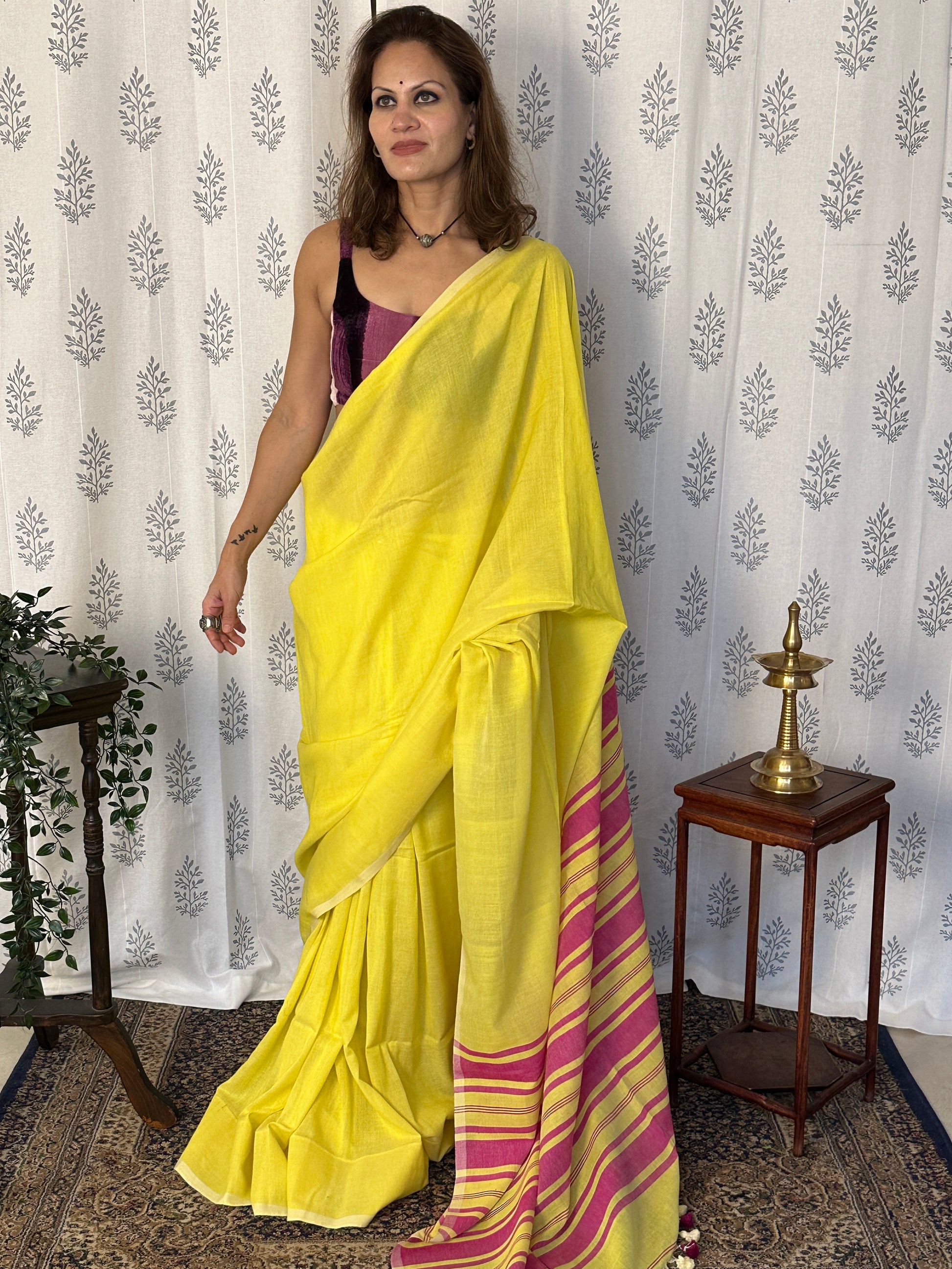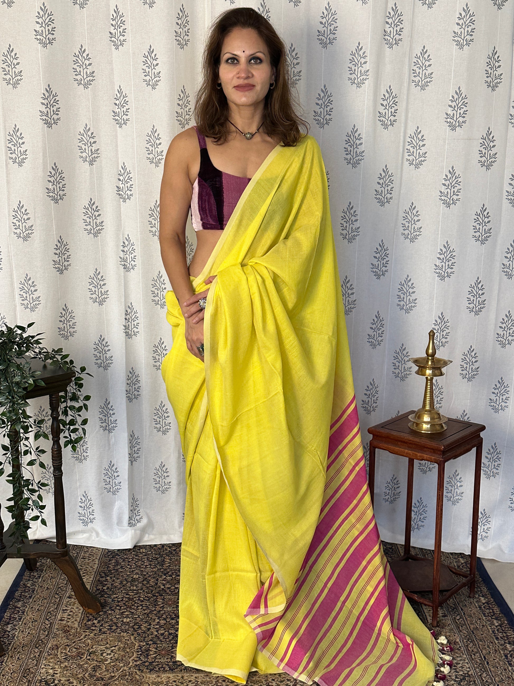 - Each piece is one of its kind and made uniquely for you. The saris are handwoven and thus you might notice minor irregularities and unevenness in the weave, pattern, or selvedge and those are not considered as damages but add to the charm and uniqueness of a handwoven sari.